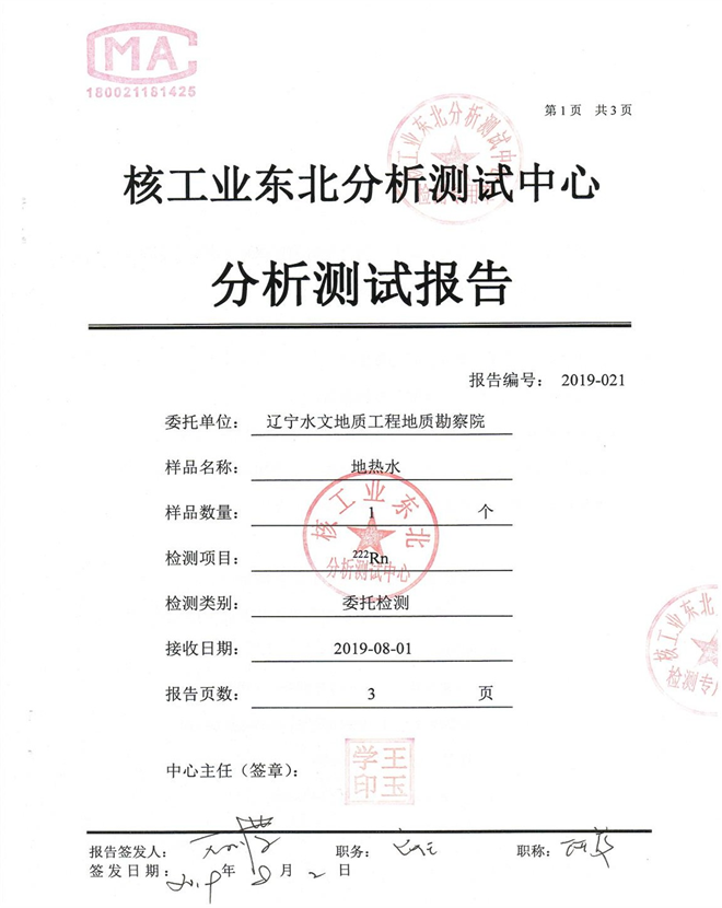 营口北海经济开发区古海温泉检测报告................. 6