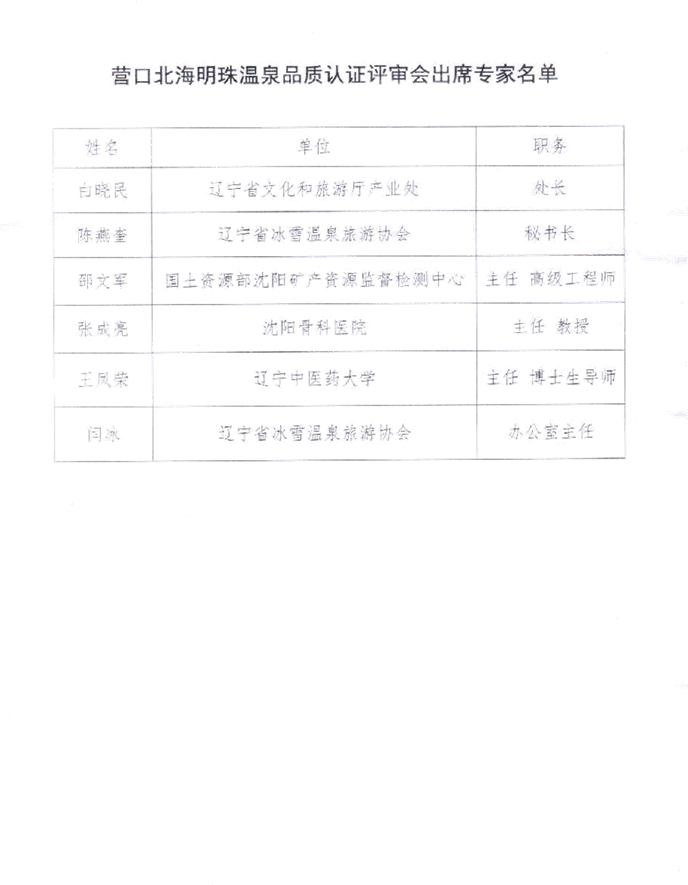 营口北海经济开发区古海温泉品质认证标准专家评审.... 11